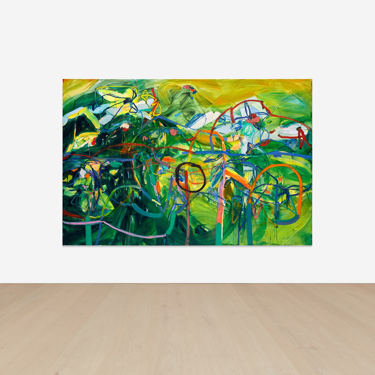 Fadojutimi brings a frenetic energy to painting, as many of her works are completed in late-night bursts of creativity; what may start the night as a blank canvas often emerges in the morning as a finished work. Describing her practice in environmental terms, Fadojutimi strives to incorporate the ineffable associations of memory absorbed from the warm moments and special objects of life; taken against the societal backdrop of their creation, Fadojutimi’s paintings shine out as optimistic beacons for dark times.