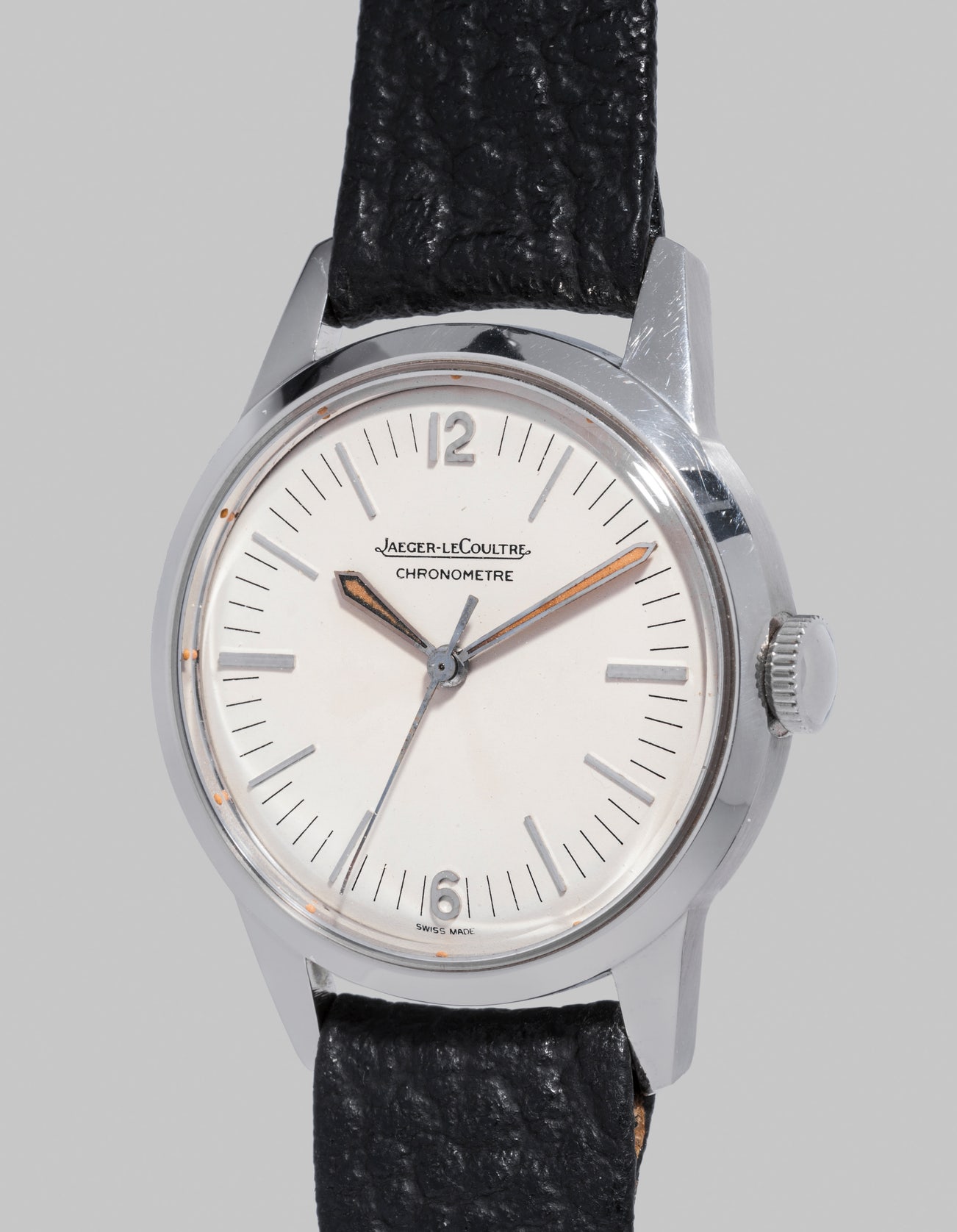 The present lot made in 1958 is in excellent condition, with a pure dial, well preserved enamel medallion on the caseback and original Jaeger LeCoultre buckle. It is offered with Jaeger LeCoulte brochure, price list from 1958 as well as super rare and original 'Jaeger LeCoultre Sputnick' presentation case.