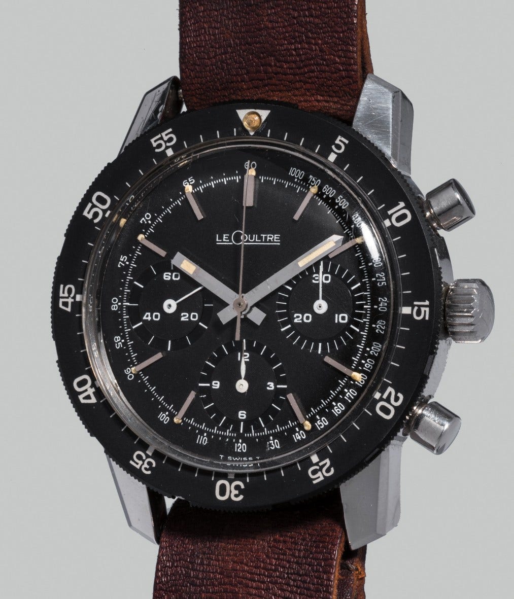 This exact timepiece is featured in Chronografi da Polso Vol. II by Paul White, pages 206-207, and is further enhanced by its original, excellent condition which will appeal to the collector of unusual and rare sports watches.