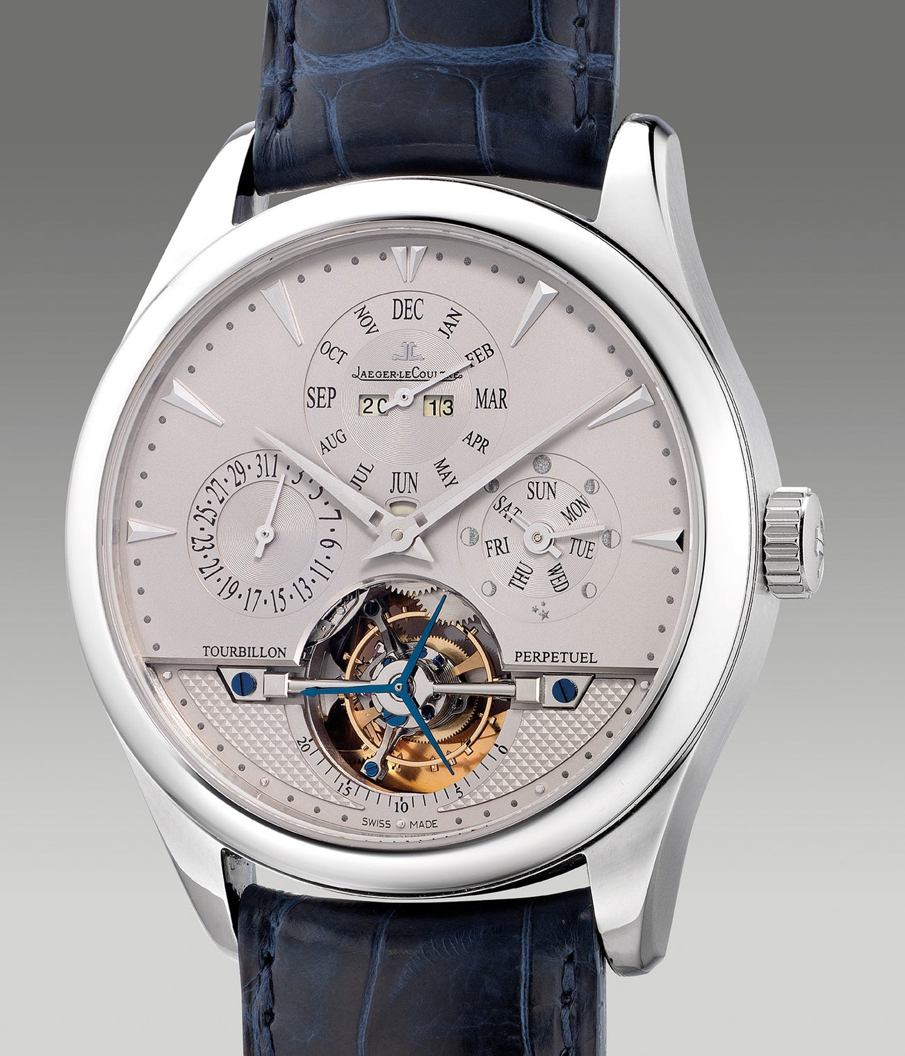 The present Master Grande Tradition Tourbillon Perpetual is a shining example from this line. It is cased in platinum with its already impressive complications executed to the highest level. The magnificent perpetual calendar not only indicates the common day, date and month but also includes digital year, leap year as well as moon phases displays. The tourbillon escapement appears to be floating and is flanked by a challenging to finish but nonetheless perfectly polished tourbillon bridge, further enhancing the visual splendor of the mesmerizing tourbillon.
