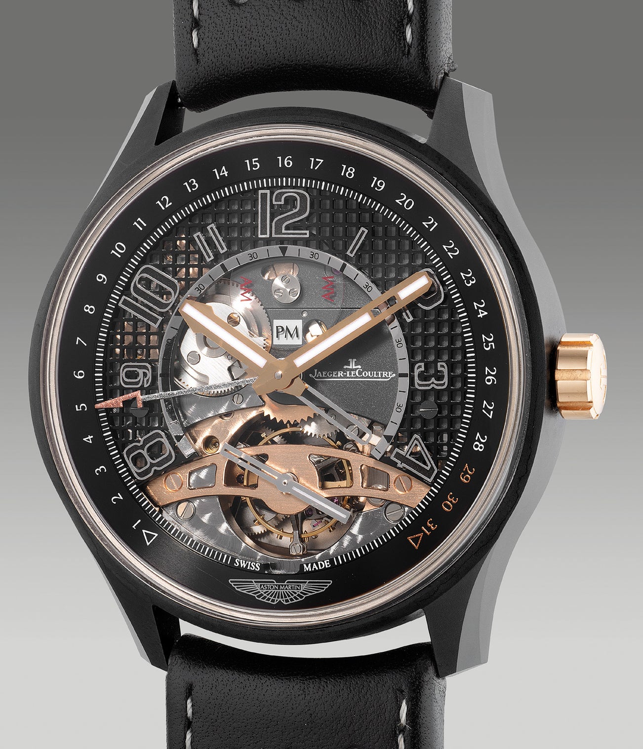 A rare and attractive limited edition ceramic and pink gold open work tourbillon dual-time wristwatch with retrograde date, day and night indication, certificate and presentation box, made in collaboration with Aston Martin, numbered 291 of a limited edition of 300 pieces