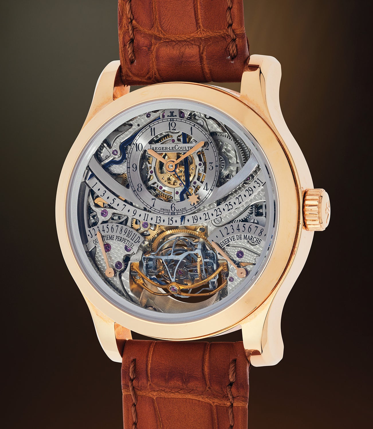 The pink gold model was launched in 2012 in a limited edition of just 28 timepieces. The present gyrotourbillon, number 5, is offered by the original owner in excellent overall condition and accompanied by its Certificate of Origin, presentation box, and hang tag. When first released, the Gyrotourbillon 1 was the most complicated watch made by Jaeger-LeCoultre. It pushed the boundaries of mechanical watchmaking and opened the door for a new era of complicated timepieces that are not only visually stimulating but also technical marvels that are a joy to contemplate.
