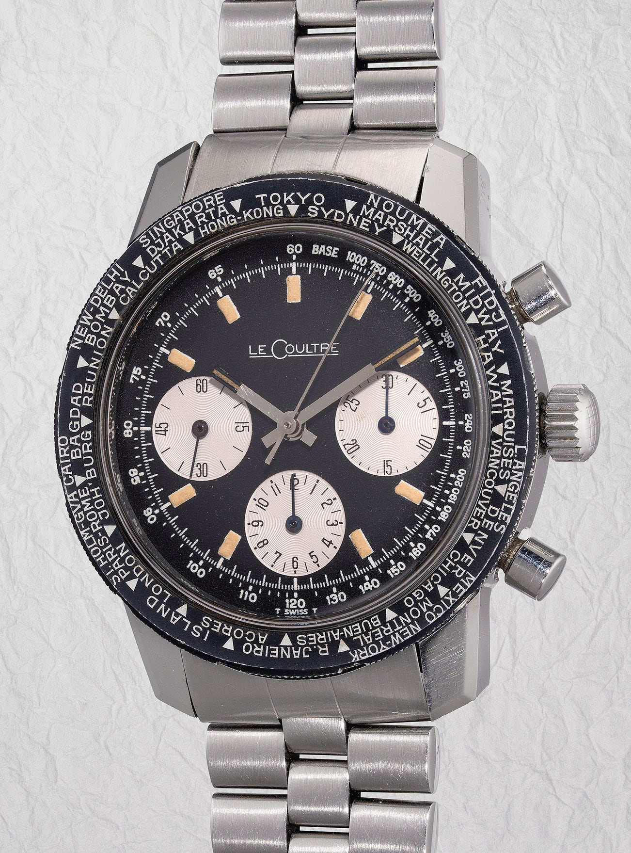 A very rare and well-preserved stainless steel diver’s wristwatch with tachymeter scale, world-time bezel, additional telemeter and 60-minute bezel, bracelet, guarantee and presentation box