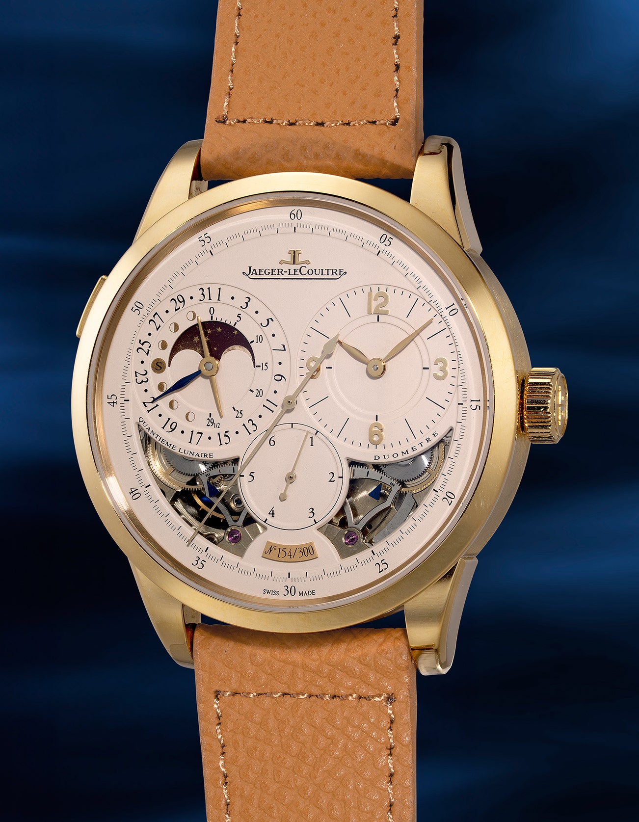 - The present yellow gold example is numbered 154 of a limited edition of 300 pieces, this Duometre exemplifies Jaeger-LeCoultre's mastery of micromechanics and innovation. Offered here in barely worn condition with its full set of accessories.