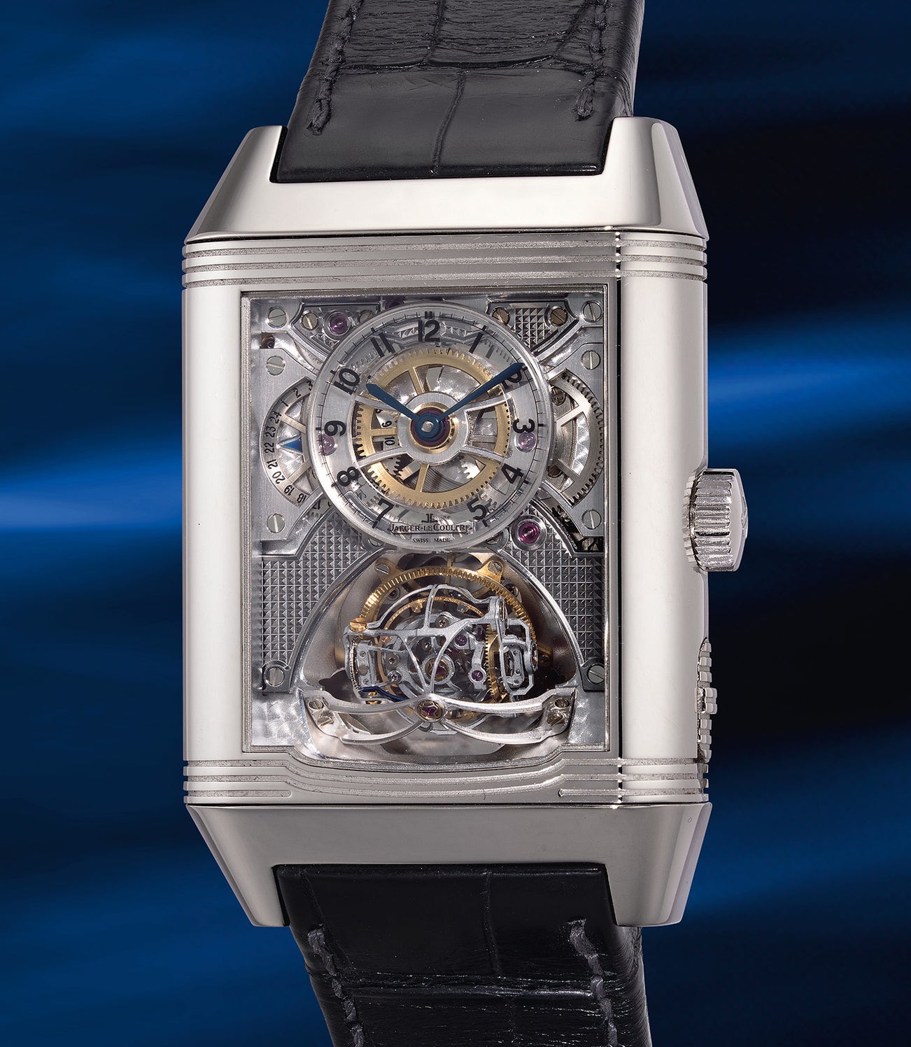 A very rare and complicated limited edition platinum multi-axis tourbillon wristwatch with reversible skeletonised dial, 24-hour indication, certificate and presentation box, numbered 28 of a limited edition of 75 pieces