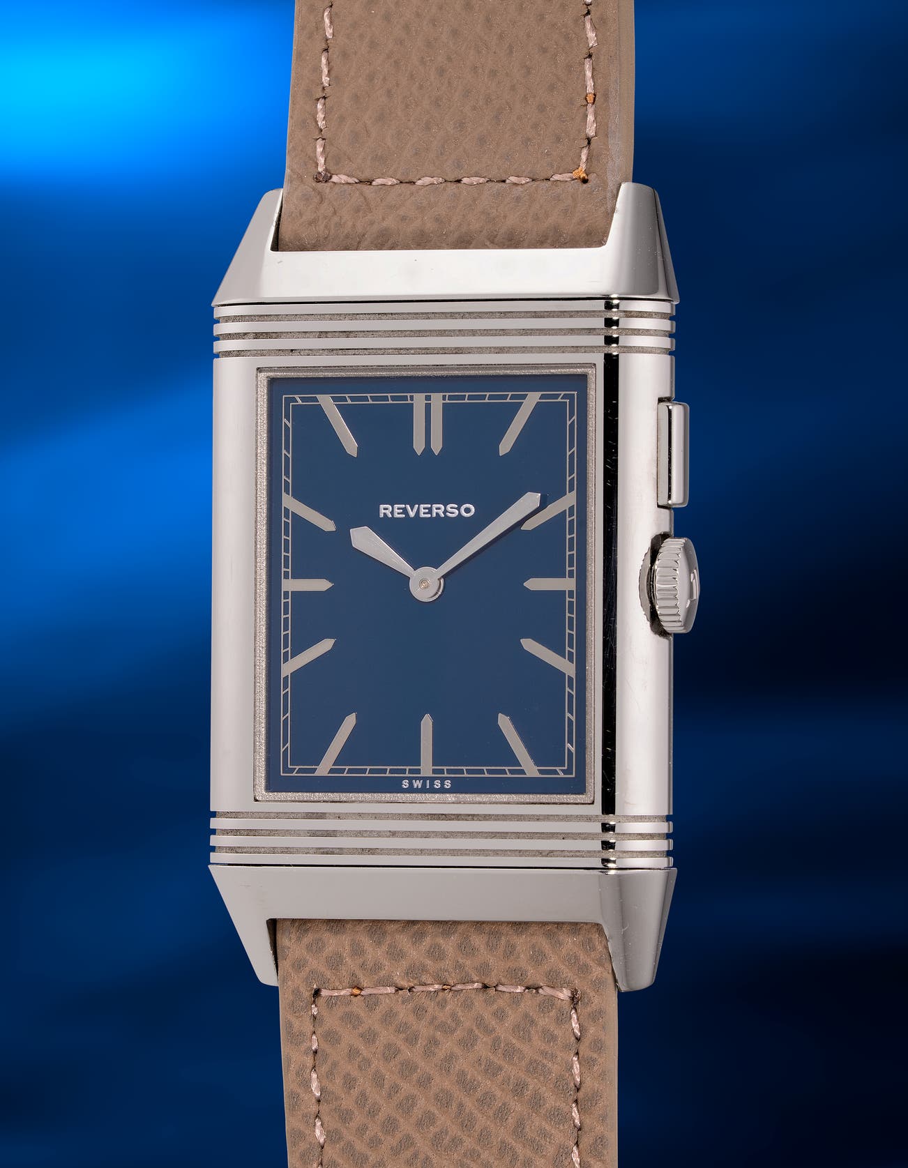 - Revealed in 2013, the blue lacquered dial Reverso is a tribute to the layout of the original Reverso from 1931. As for the colour of the dial, the royal blue, glossy lacquered dial is inspired by a blue dial variation of the Reverso in 1933, where the only difference is that the small seconds is not to be seen as to make the Duoface Bleu closer to the 1931 layout. The “Reverso” logo also uses the same font as the original watch, reflecting the historic look of the classic.