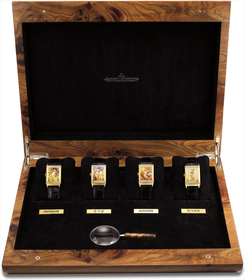 A very attractive limited edition set of four gold and enamel reverso wristwatches depicting the four seasons