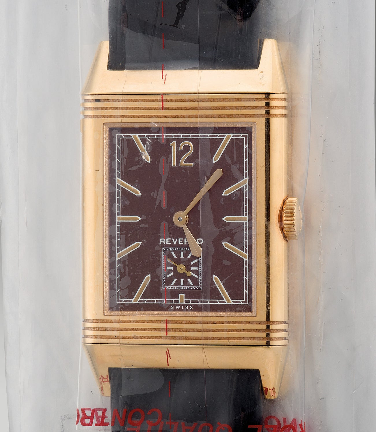 A fine and well-preserved pink gold rectangular-shaped reversible wristwatch with “chocolate” dial, warranty and presentation box, factory sealed