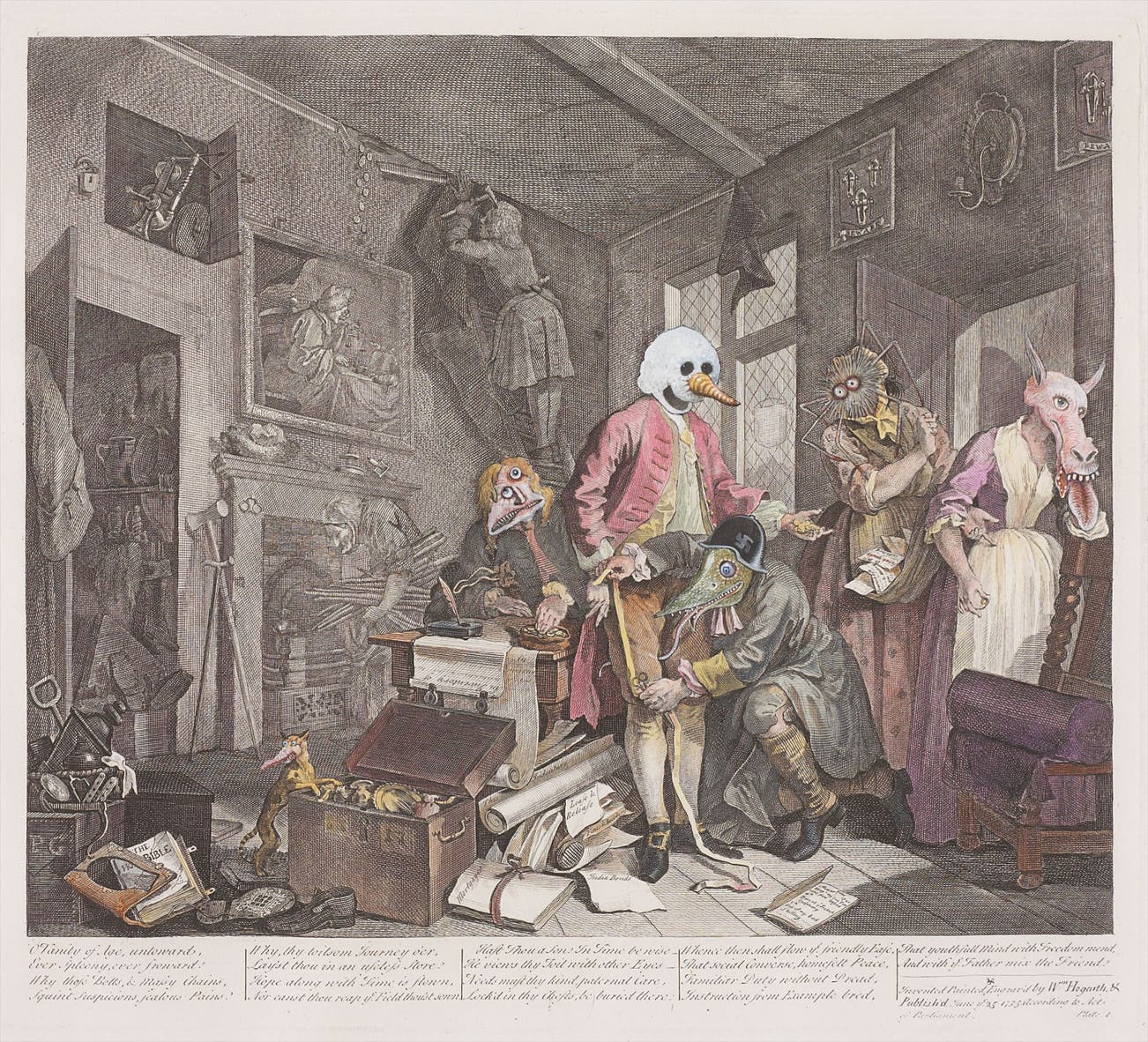 ink and gouache on found etching