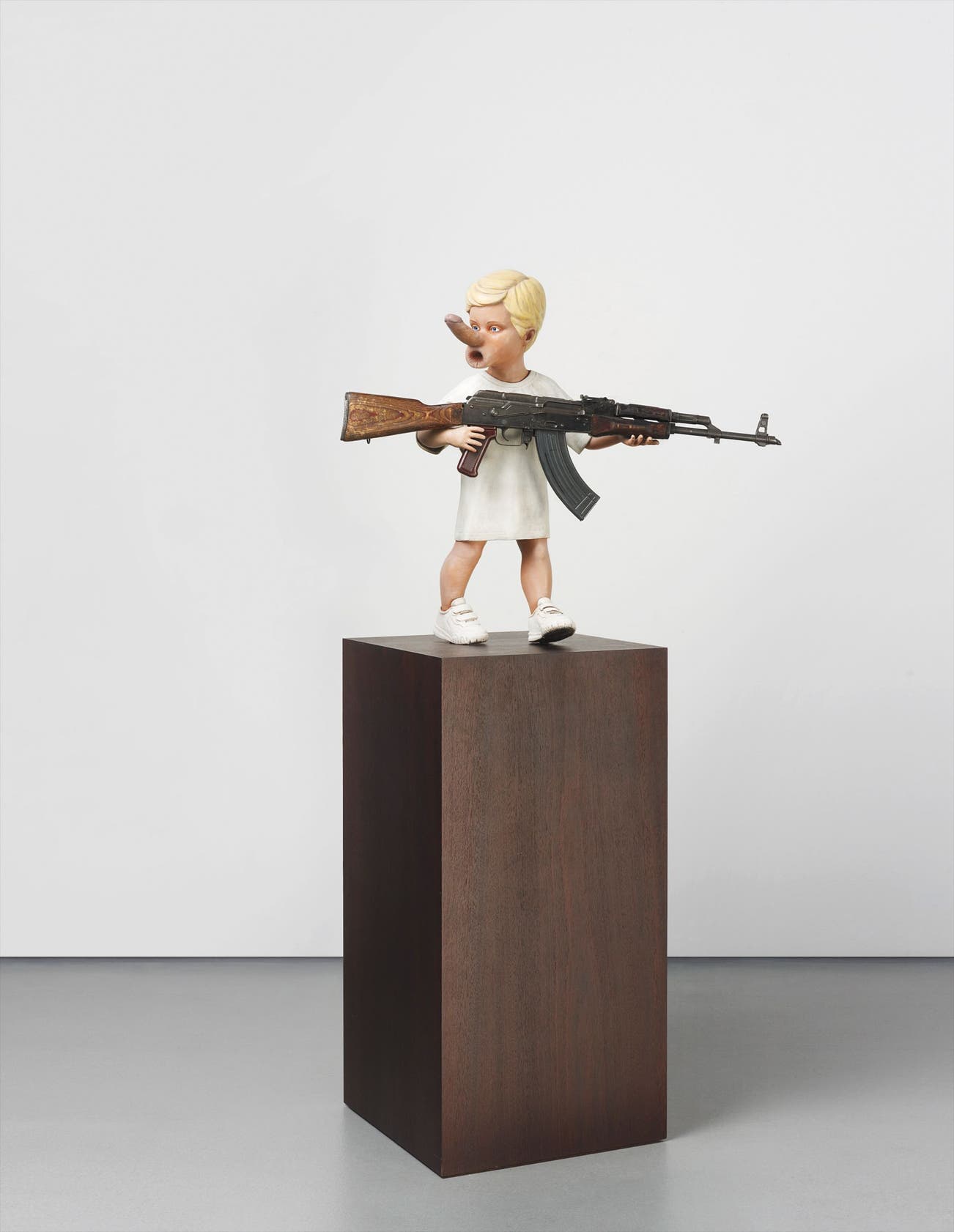 painted breglass and resin, decommissioned AK-47, wood