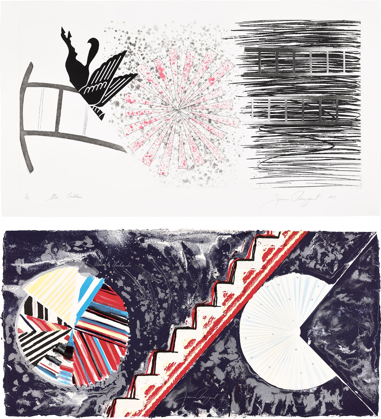 Both signed, titled, dated and numbered 15/78 and 47/85 in pencil respectively (there were also 24 and 16 artist's proofs), Star Ladder published by Multiples, Inc., New York and Alphabet Avalanche published by Bird Island Publishing Inc., Minneapolis, both framed.