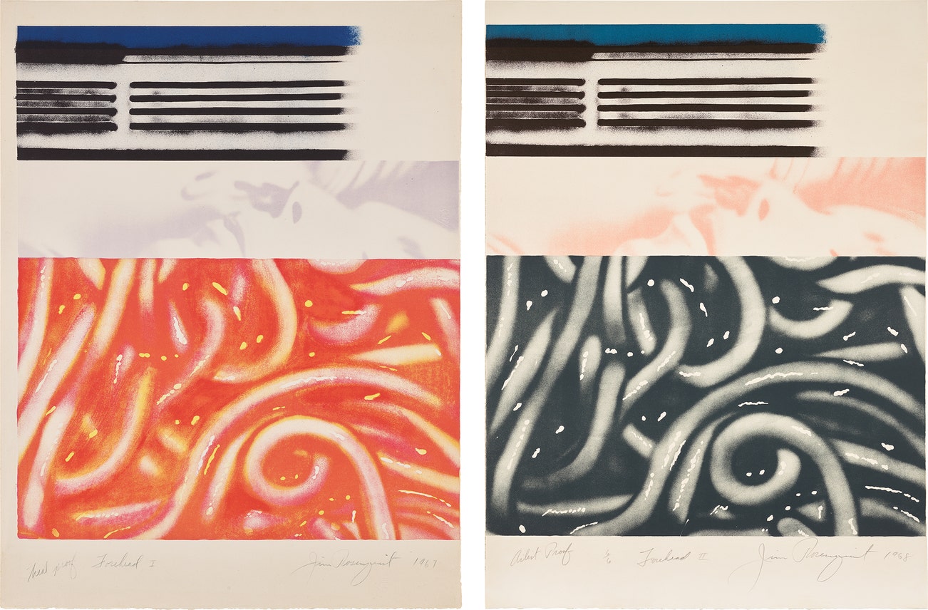 Both signed, titled and dated (Forehead I dated '1967'), Forehead I annotated 'Trial proof' in water soluble crayon (the edition was 121), Forehead II annotated 'Artist's Proof 6/6' in pencil (the edition was 96), published by Richard Feigen Graphics, New York (with their blindstamp), one framed.