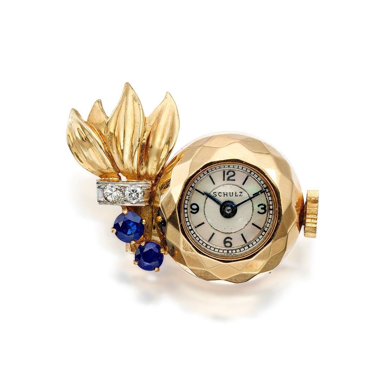 A Diamond, Sapphire, Mother-of-Pearl, Rose and White Gold Pendant Watch