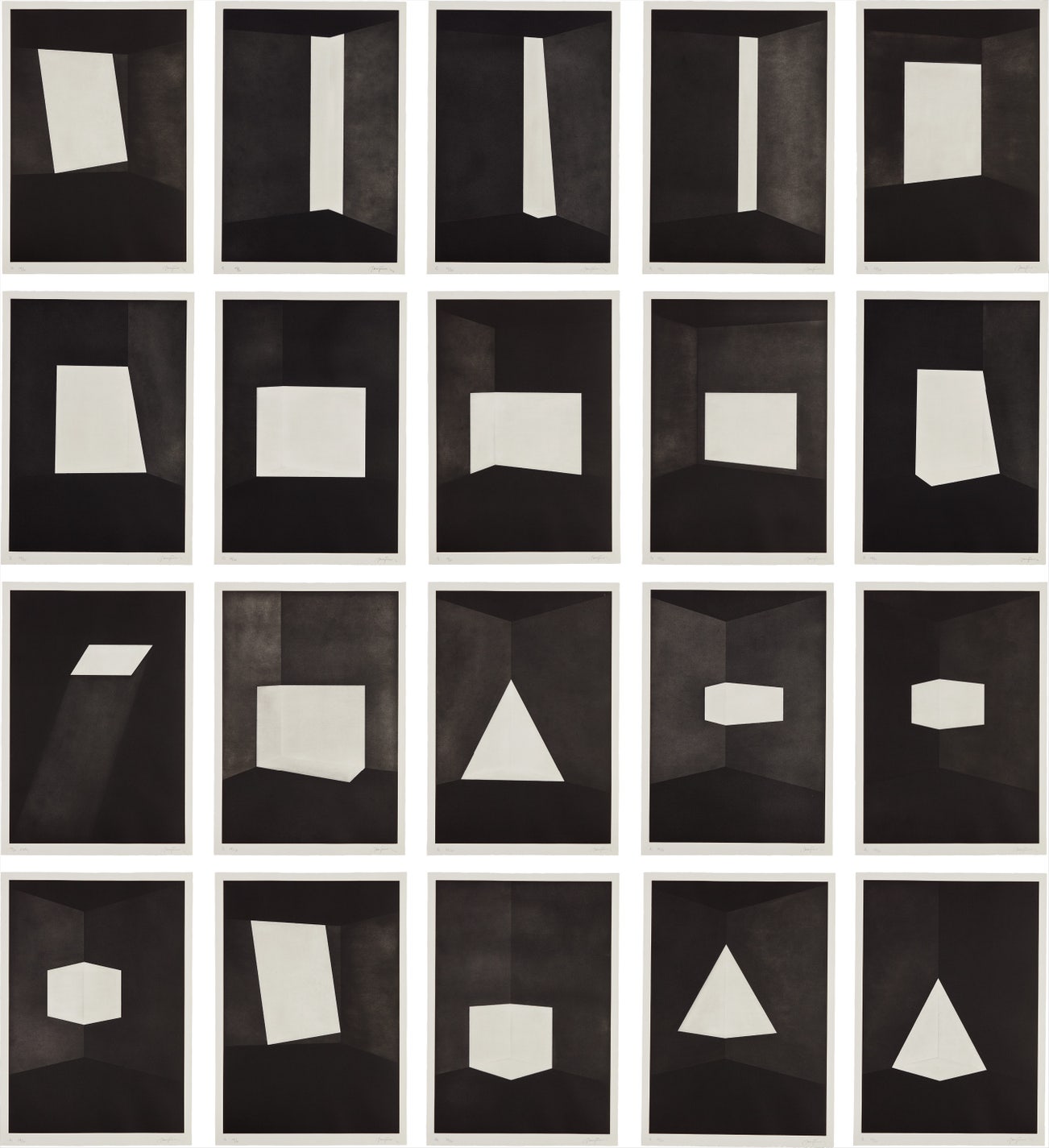 All signed, numbered 28/30 and all annotated `A1-A5,' `B1-B3,' `C1-C4,' `D1-D4,', `E1-E3' and 'meeting' respectively in pencil (there were also 10 artist's proofs in Roman numerals), published by Peter Blum Edition, New York, all unframed.