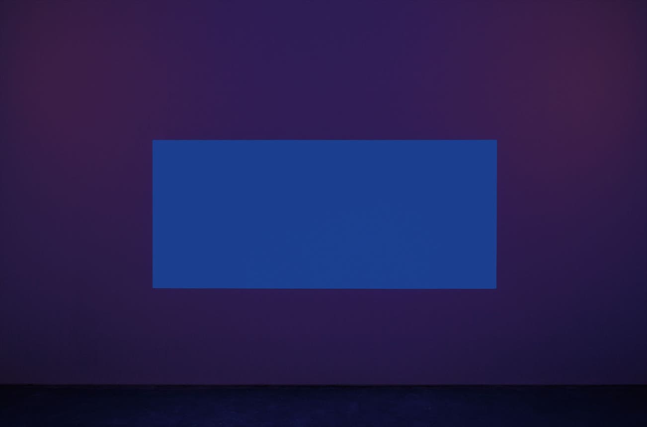Fastnet is composed of two rooms separated by a wall with a rectangular opening, creating the illusion of a ‘light painting’ floating in the centre of the room. Walking into the dark ‘sensing space,’ the viewer enters an alternate realm of Turrell’s creation. The space is bathed in the cool blue light that penetrates from the opening of the ‘viewing space.’ On first glance the opening between the two spaces is perceived as a solid blue plane, recalling colour field paintings by artists like Rothko and Yves Klein. A closer examination reveals the seemingly infinite space of the light-filled ‘viewing space.’ Fastnet’s blue light seems to anthropomorphise around us, pulsating within the gallery space. The work’s title, which translates to ‘carnival’ from German, also invokes a dynamic energy, reminding the viewer that they are at once observers and participants in Turrell’s work.
