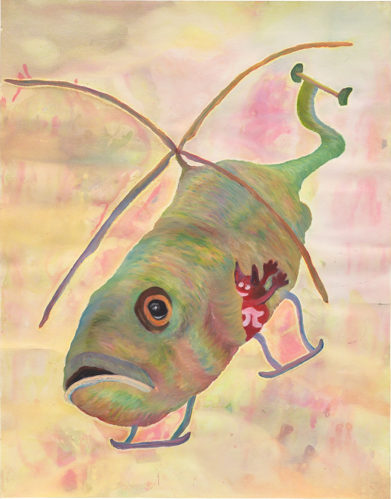 oil pastel, oilstick, fabric dye, industrial salt and fabric spray paint on paper