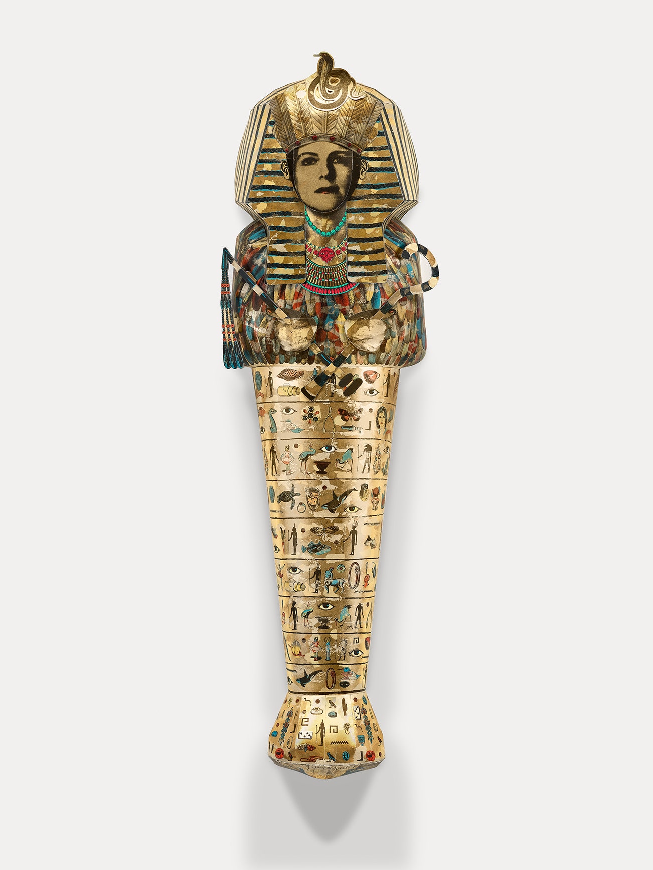 Mixed media multiple of lithograph and screenprint in colors with Chine collé and gold leaf appliqué.