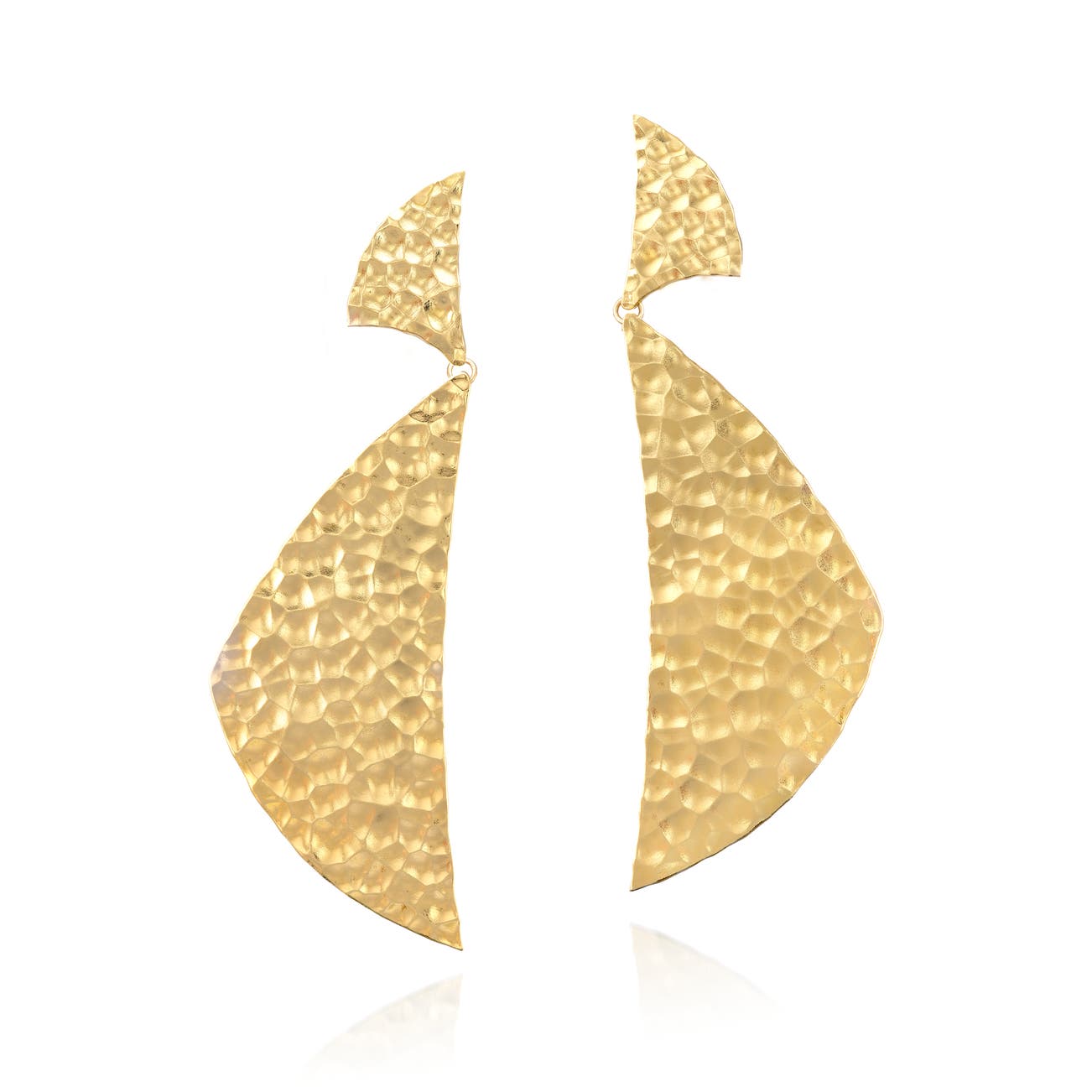 Each suspending a pendant, designed as two triangular plaques with hammered finish, signed JAR, numbered, French assay and maker's marks, length approximately 117 mm.