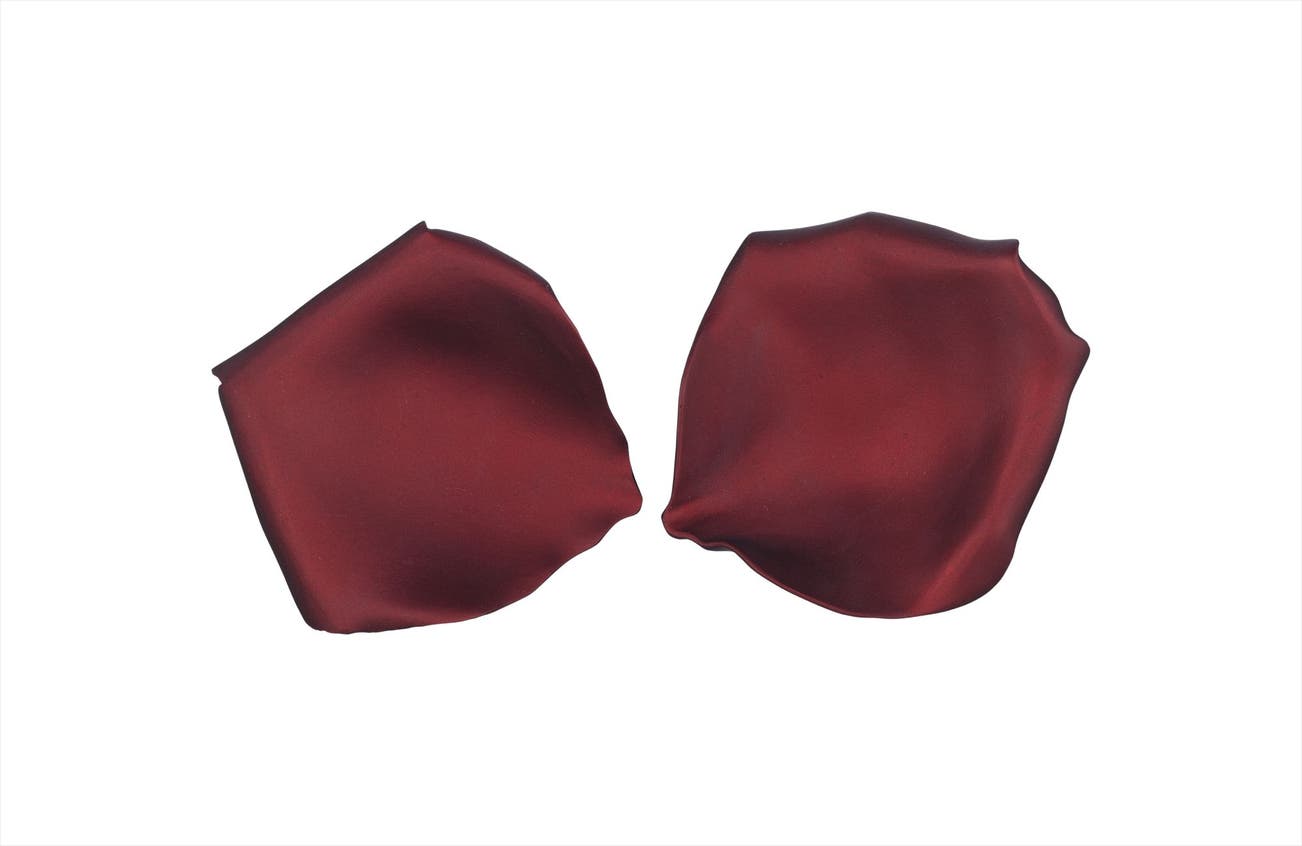 Each designed as a sculpted deep red titanium rose petal, mounted in 18K yellow gold and titanium, length 1 3/4 inches.