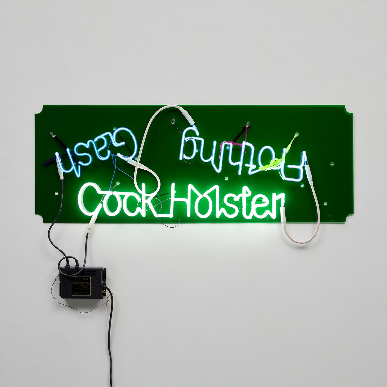 artist installation comprising neon lights mounted to Plexiglas with wire, string and lace, and transformer