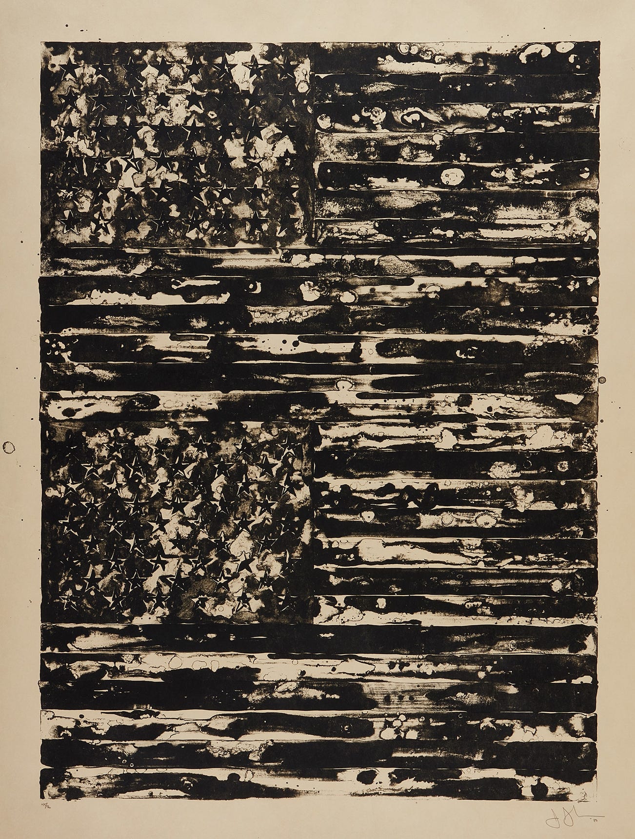 American | 1930Jasper Johns is a painter and printmaker who holds a foundational place in twentieth century art history. Quoting the evocative gestural brushstroke of the Abstract Expressionists, Johns represented common objects such as flags, targets, masks, maps and numbers: He sought to explore things "seen and not looked at, not examined" in pictorial form. Drawing from common commercial and 'readymade' objects, such as newspaper clippings, Ballantine Ale and Savarin Coffee cans, Johns was a bridge to Pop, Dada and Conceptual art movements.
