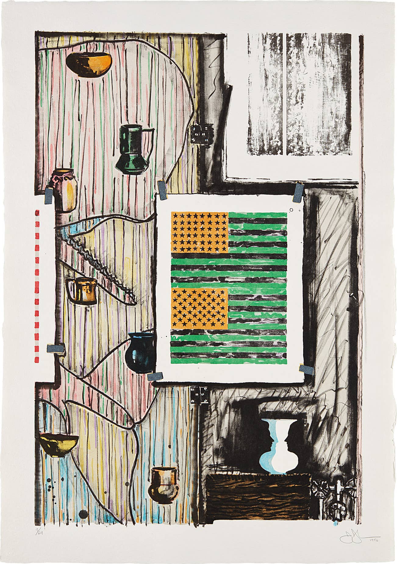 American | 1930Jasper Johns is a painter and printmaker who holds a foundational place in twentieth century art history. Quoting the evocative gestural brushstroke of the Abstract Expressionists, Johns represented common objects such as flags, targets, masks, maps and numbers: He sought to explore things "seen and not looked at, not examined" in pictorial form. Drawing from common commercial and 'readymade' objects, such as newspaper clippings, Ballantine Ale and Savarin Coffee cans, Johns was a bridge to Pop, Dada and Conceptual art movements.