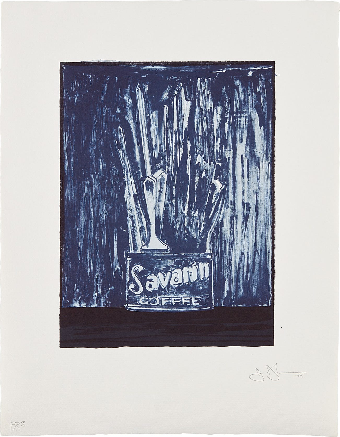 American | 1930Jasper Johns is a painter and printmaker who holds a foundational place in twentieth century art history. Quoting the evocative gestural brushstroke of the Abstract Expressionists, Johns represented common objects such as flags, targets, masks, maps and numbers: He sought to explore things "seen and not looked at, not examined" in pictorial form. Drawing from common commercial and 'readymade' objects, such as newspaper clippings, Ballantine Ale and Savarin Coffee cans, Johns was a bridge to Pop, Dada and Conceptual art movements.