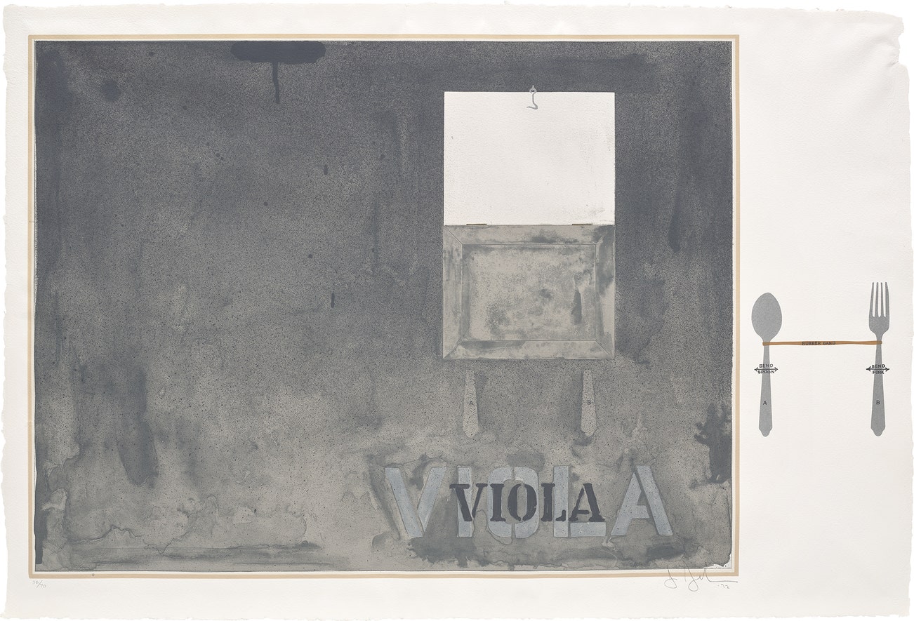 Beyond the historical significance, each work by Johns is individually considered in sensuous form. A curiosity of medium led him to employ a range of materials from encaustic and commercial house paint to lithography, intaglio and lead relief.