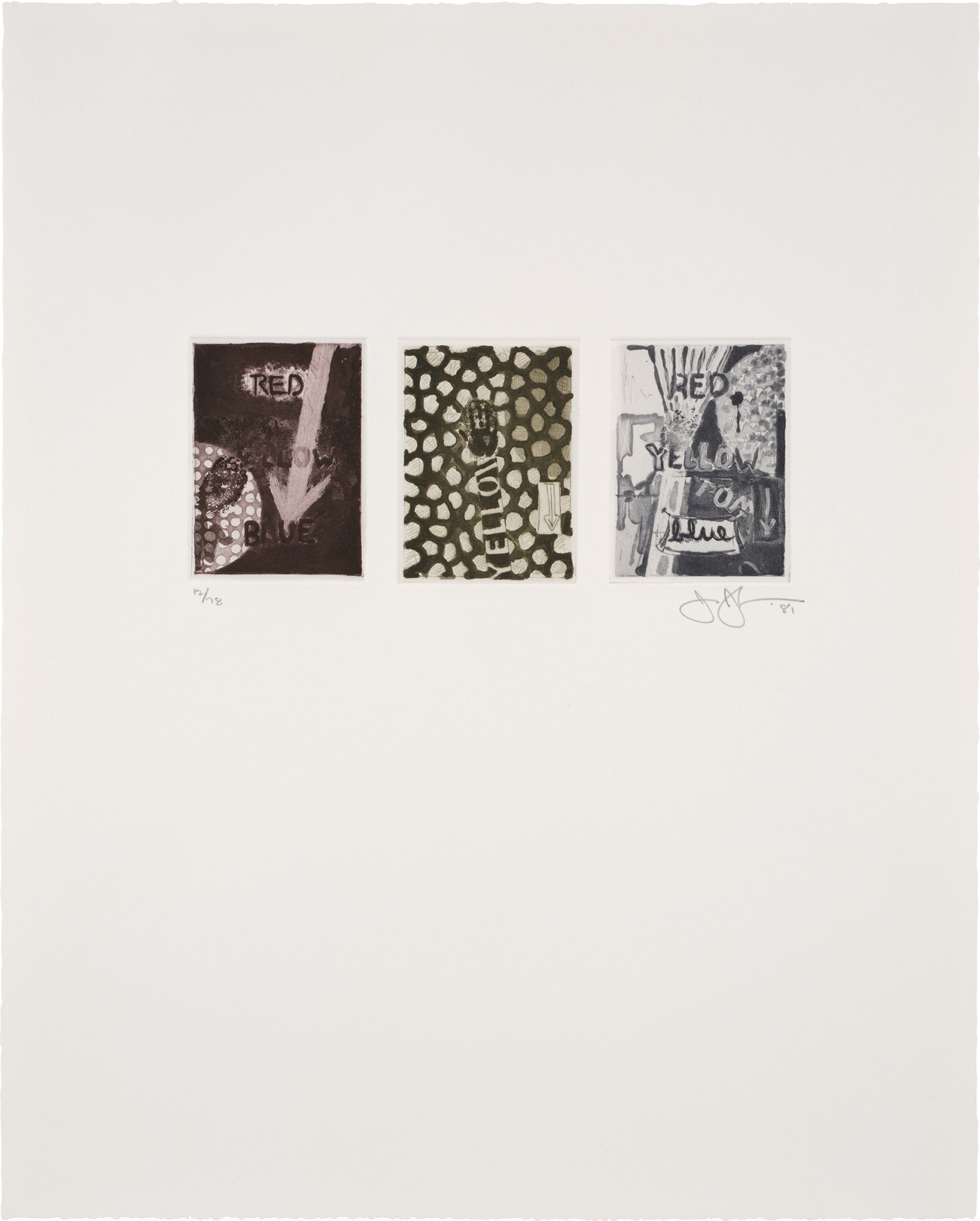Beyond the historical significance, each work by Johns is individually considered in sensuous form. A curiosity of medium led him to employ a range of materials from encaustic and commercial house paint to lithography, intaglio and lead relief.
