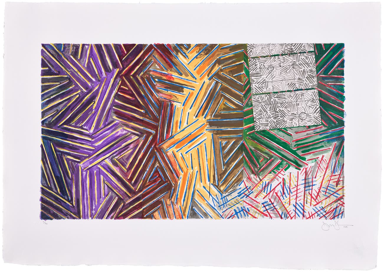 American | 1930Jasper Johns is a painter and printmaker who holds a foundational place in twentieth century art history. Quoting the evocative gestural brushstroke of the Abstract Expressionists, Johns represented common objects such as flags, targets, masks, maps and numbers: He sought to explore things "seen and not looked at, not examined" in pictorial form. Drawing from common commercial and 'readymade' objects, such as newspaper clippings, Ballantine Ale and Savarin Coffee cans, Johns was a bridge to Pop, Dada and Conceptual art movements.