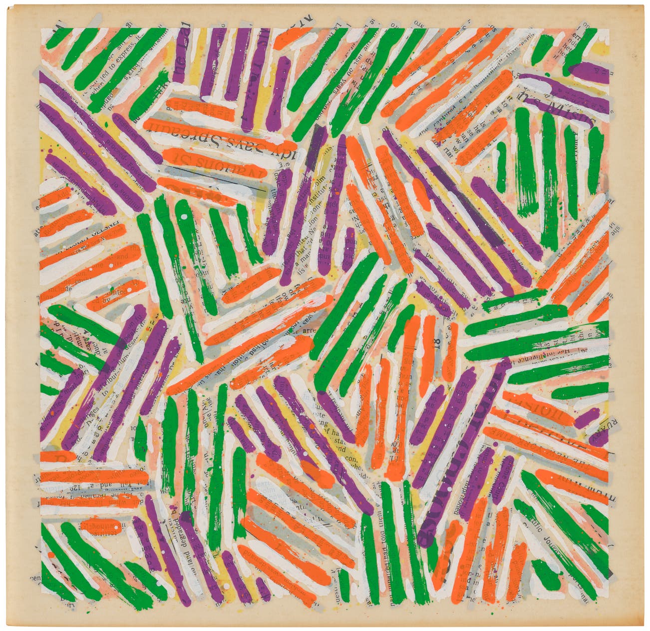 American | 1930Jasper Johns is a painter and printmaker who holds a foundational place in twentieth century art history. Quoting the evocative gestural brushstroke of the Abstract Expressionists, Johns represented common objects such as flags, targets, masks, maps and numbers: He sought to explore things "seen and not looked at, not examined" in pictorial form. Drawing from common commercial and 'readymade' objects, such as newspaper clippings, Ballantine Ale and Savarin Coffee cans, Johns was a bridge to Pop, Dada and Conceptual art movements.