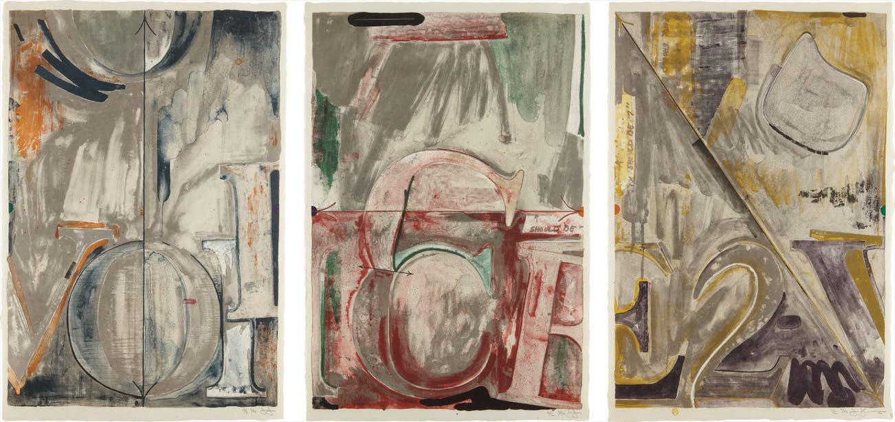 Beyond the historical significance, each work by Johns is individually considered in sensuous form. A curiosity of medium led him to employ a range of materials from encaustic and commercial house paint to lithography, intaglio and lead relief.