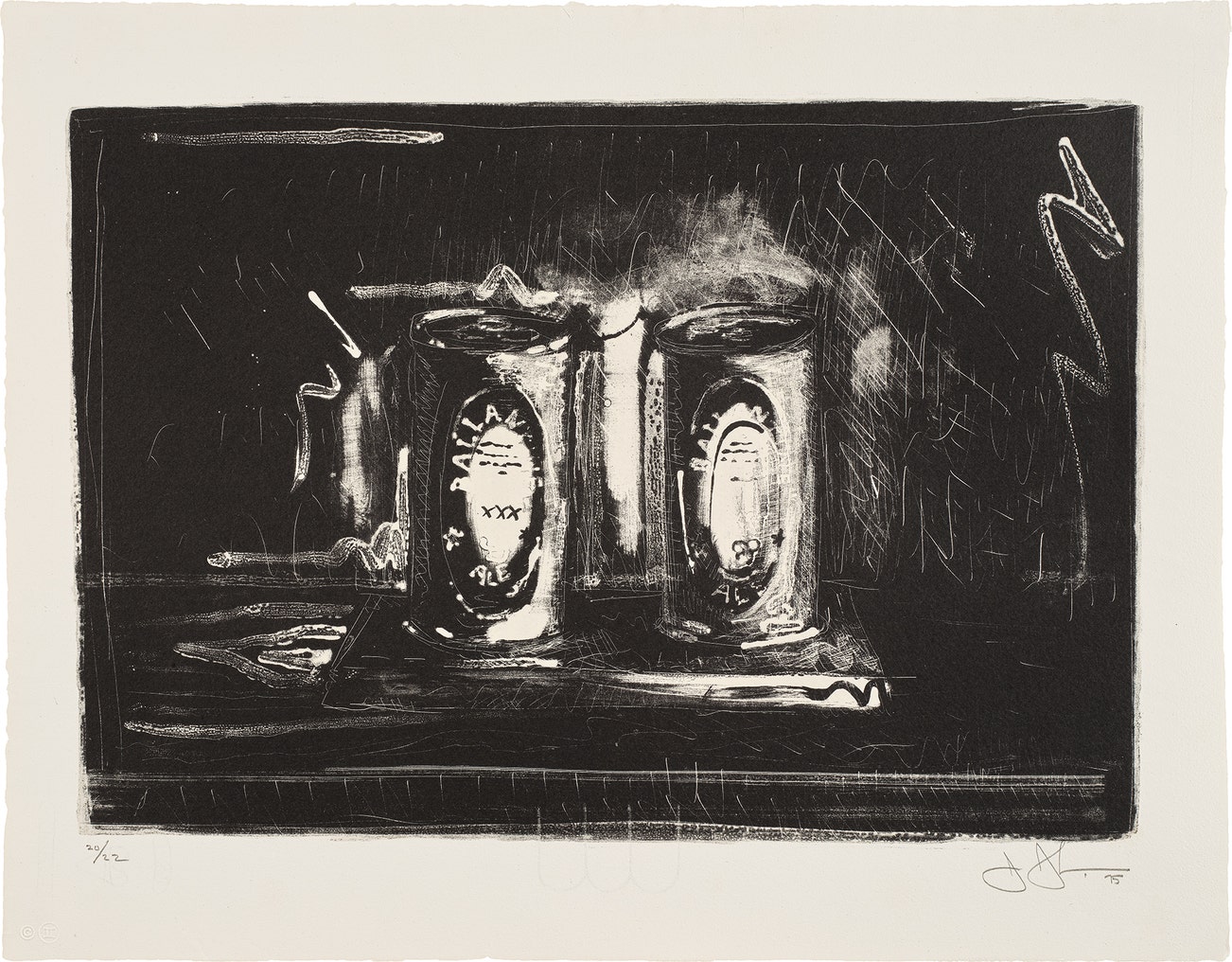 American | 1930Jasper Johns is a painter and printmaker who holds a foundational place in twentieth century art history. Quoting the evocative gestural brushstroke of the Abstract Expressionists, Johns represented common objects such as flags, targets, masks, maps and numbers: He sought to explore things "seen and not looked at, not examined" in pictorial form. Drawing from common commercial and 'readymade' objects, such as newspaper clippings, Ballantine Ale and Savarin Coffee cans, Johns was a bridge to Pop, Dada and Conceptual art movements.