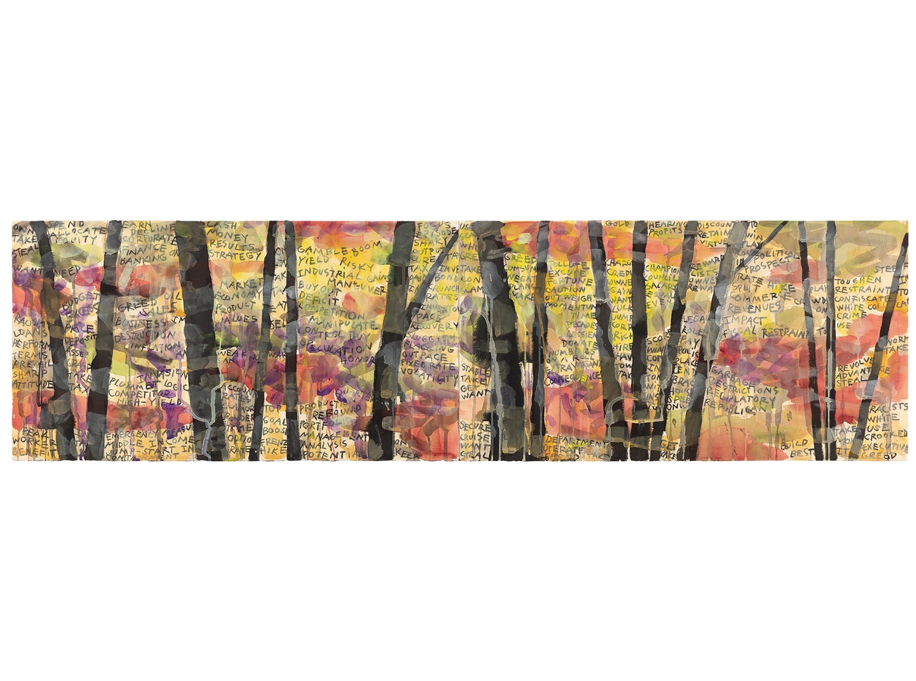 watercolor, sumi and charcoal on two joined sheets of paper