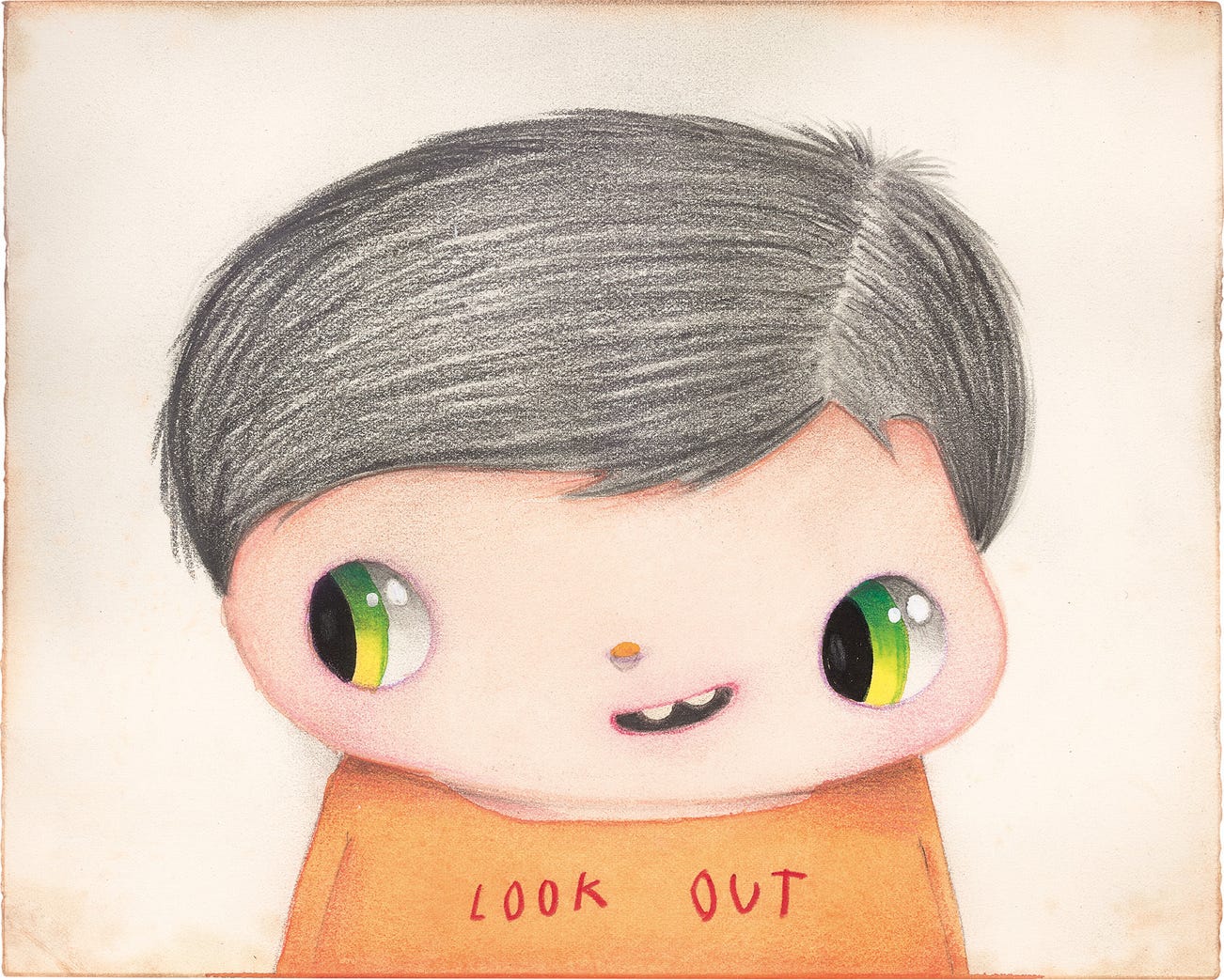 that contrasts the innocent and adolescent looking facial expressions of the