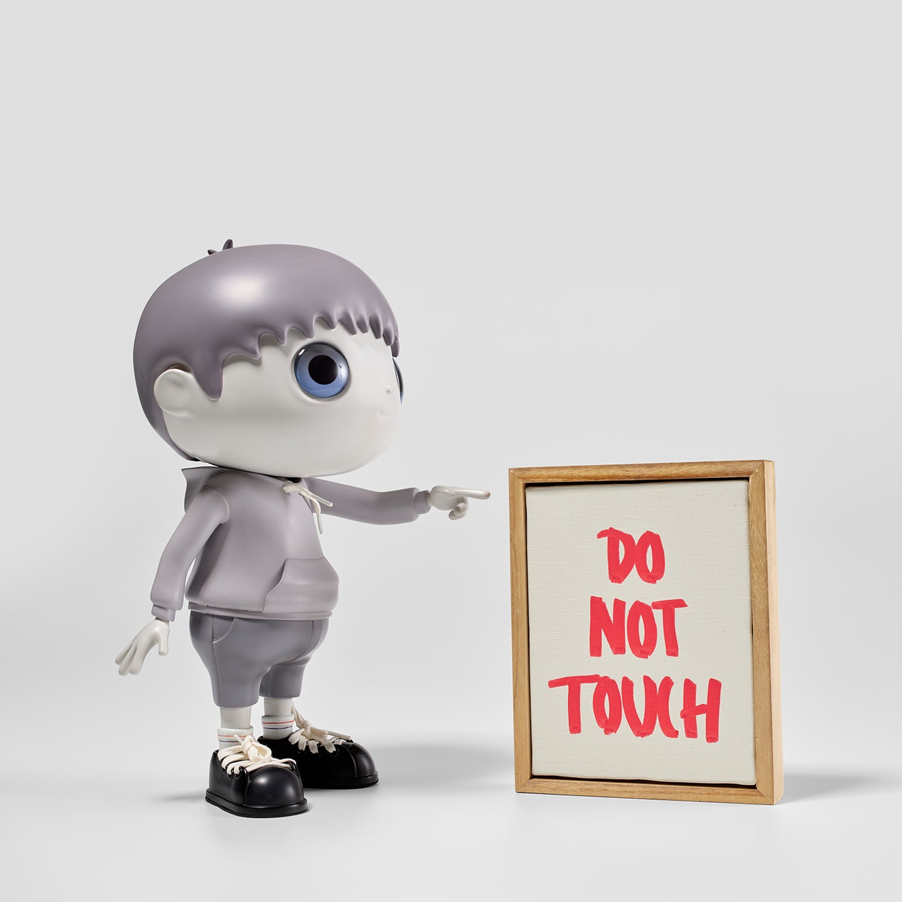 from his 70s and 80s upbringing. Calleja’s characters are often accompanied by text