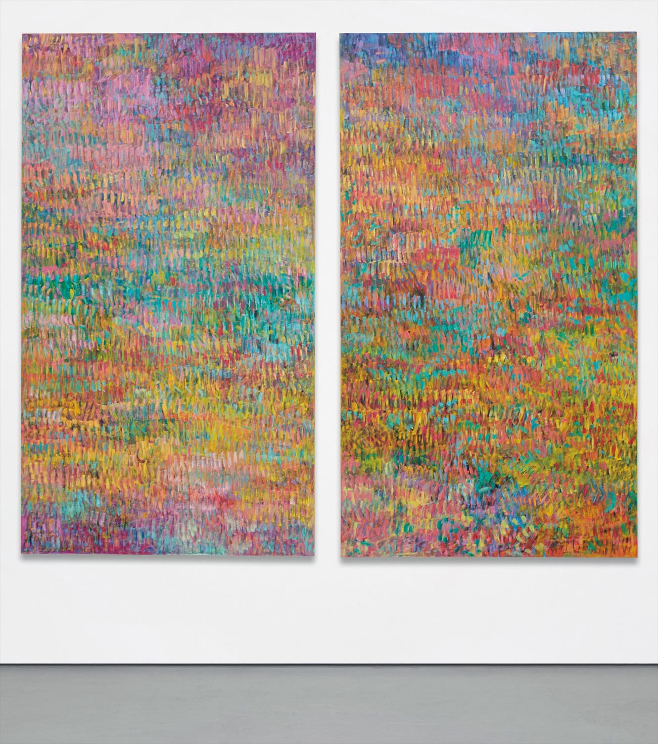 Signed, titled and dated "Jean-Baptiste Bernadet 'Untitled (Fugue - Doors II)' 2014" on the reverse of the left panel. Further signed, titled and dated "Jean-Baptiste Bernadet 'Untitled (Fugue - Doors II)' 2014" on the reverse of the right panel.