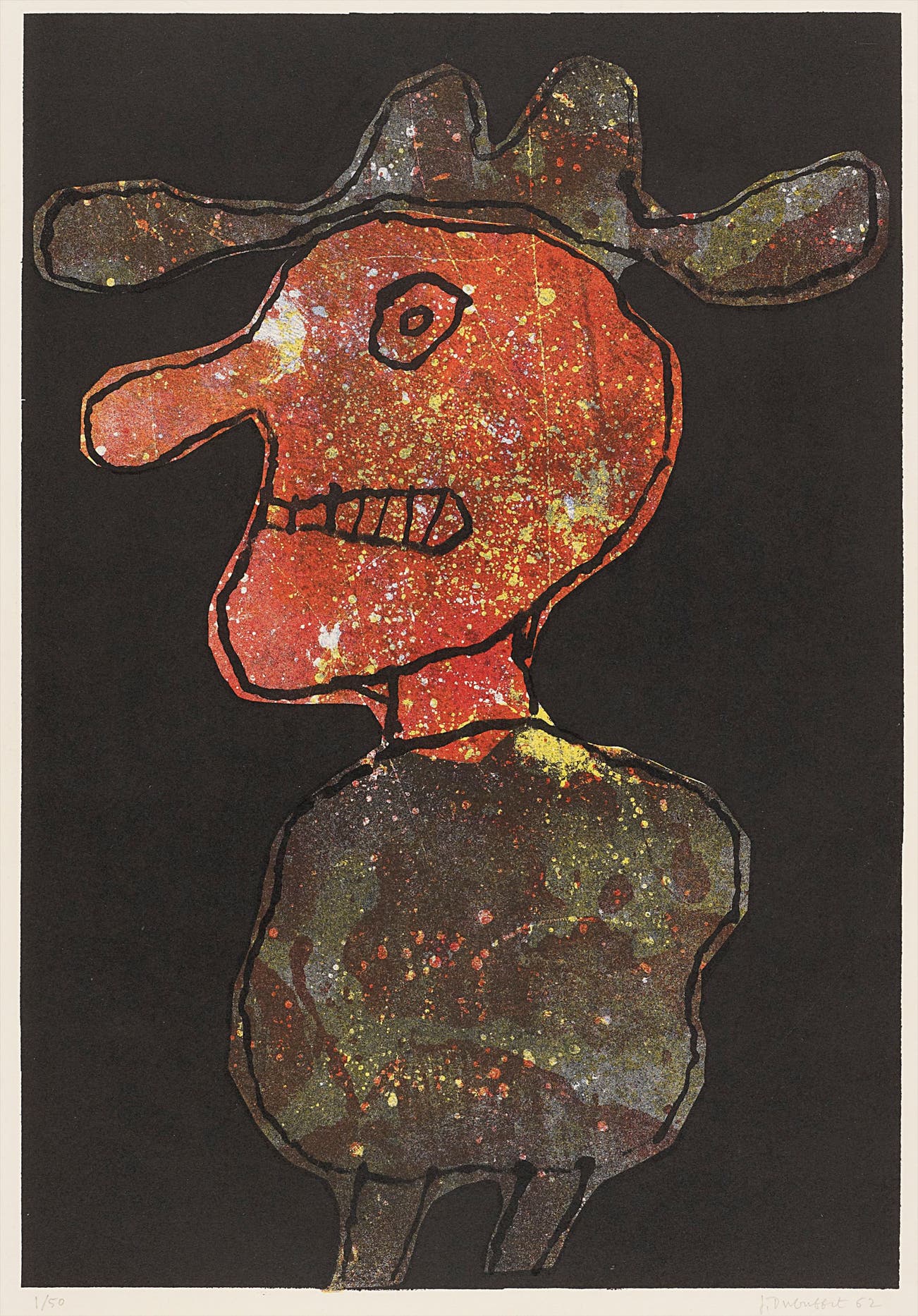 signed, dated '62' and numbered 1/50 in pencil (there were also 2 artist's proofs and 7 hors commerce numbered with Roman numerals), also inscribed 'Personnage au chapeau' in pencil under the mount, an unobtrusive moisture stain in the lower left of the image (only visible under raking light), rubbing in the lower margin, pale mount and time staining, otherwise in very good condition, framed.