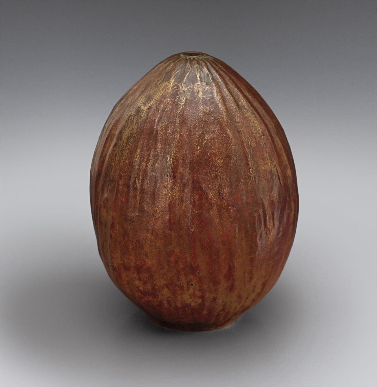 Lacquered and hand-hammered bronze with applied gold leaf.