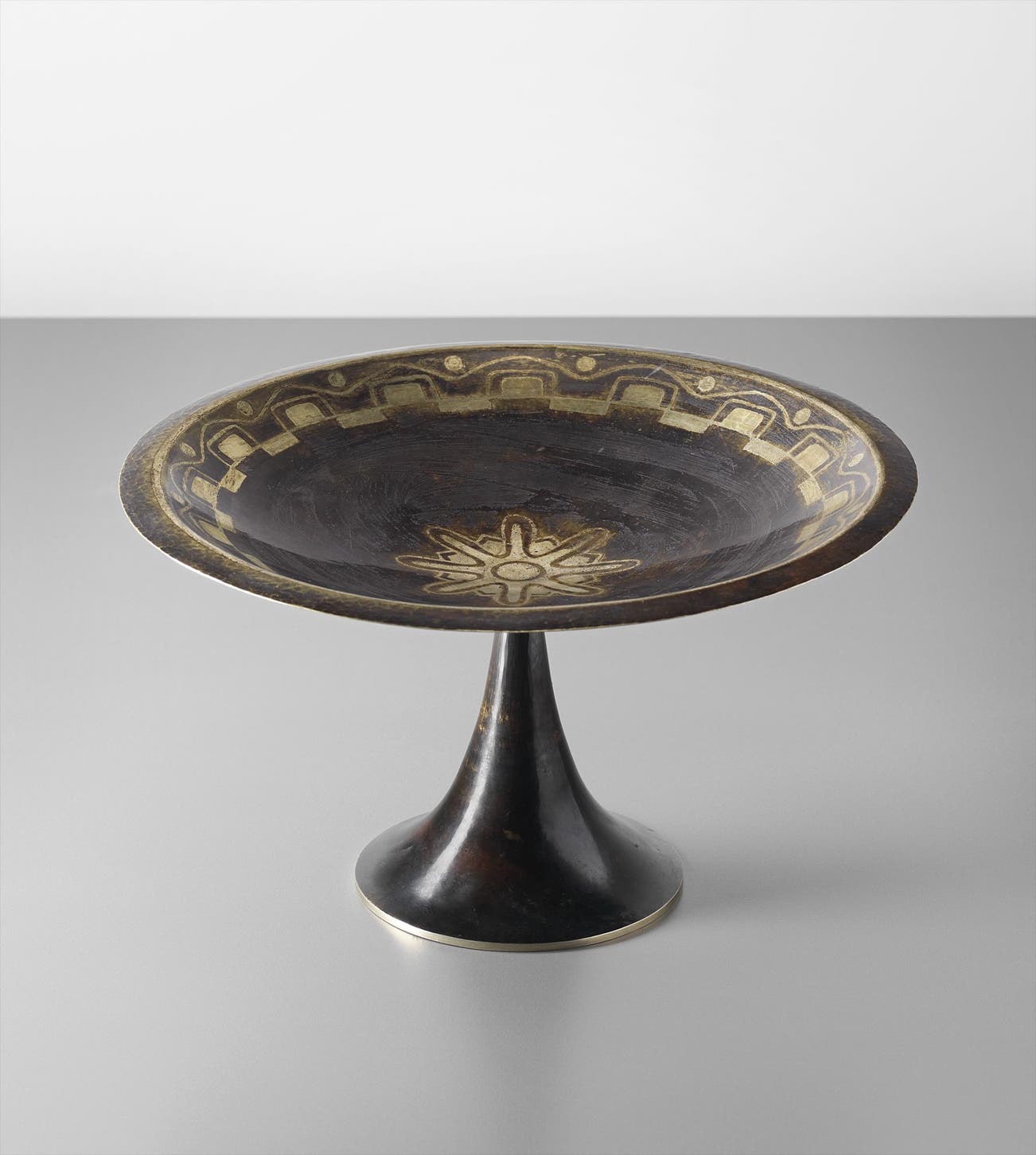 Underside of base impressed with the artist's monogram and incised with JEAN DUNAND and impressed 5775, underside of dish impressed 3303.
