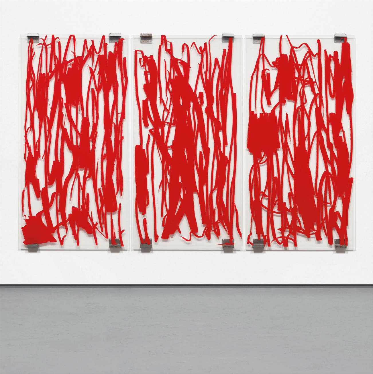 silkscreen on Plexiglas with metal brackets, in 3 parts