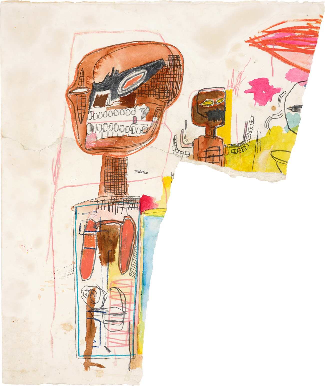 Basquiat's iconoclastic oeuvre revolves around the human figure. Exploiting the creative potential of free association and past experience, he created deeply personal, often autobiographical, images by drawing liberally from such disparate fields as urban street culture, music, poetry, Christian iconography, African-American and Aztec cultural histories and a broad range of art historical sources.
