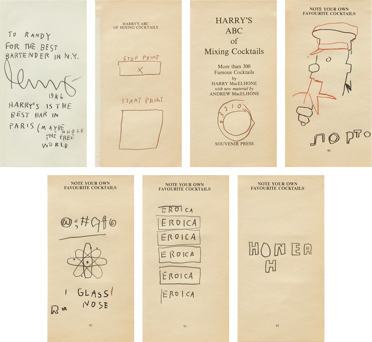 (viii) pencil on Harry MacElhone, Harry’s ABC of Mixing Cocktails: More than 300 Famous Cocktails, London, 1986, p. 27, endpaper