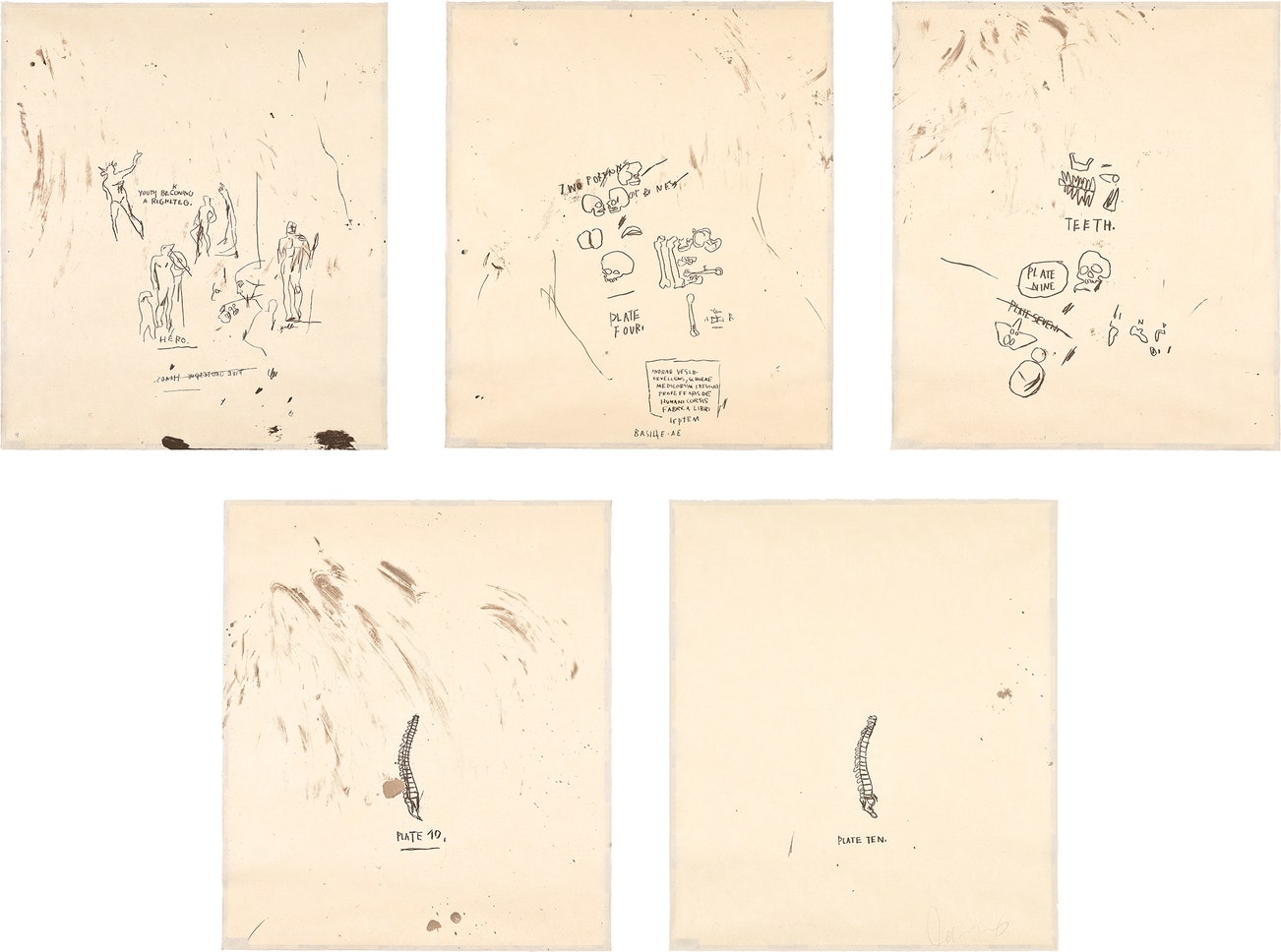 Basquiat's iconoclastic oeuvre revolves around the human figure. Exploiting the creative potential of free association and past experience, he created deeply personal, often autobiographical, images by drawing liberally from such disparate fields as urban street culture, music, poetry, Christian iconography, African-American and Aztec cultural histories and a broad range of art historical sources.