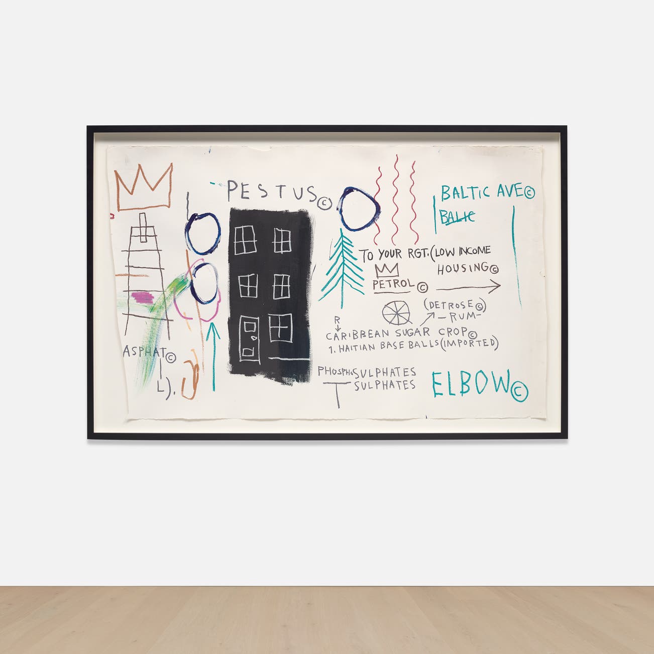 Basquiat's iconoclastic oeuvre revolves around the human figure. Exploiting the creative potential of free association and past experience, he created deeply personal, often autobiographical, images by drawing liberally from such disparate fields as urban street culture, music, poetry, Christian iconography, African-American and Aztec cultural histories and a broad range of art historical sources.
