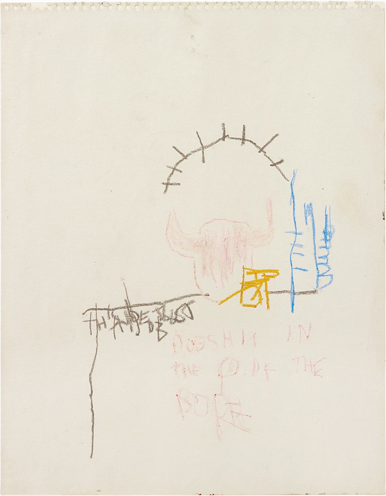Basquiat's iconoclastic oeuvre revolves around the human figure. Exploiting the creative potential of free association and past experience, he created deeply personal, often autobiographical, images by drawing liberally from such disparate fields as urban street culture, music, poetry, Christian iconography, African-American and Aztec cultural histories and a broad range of art historical sources.