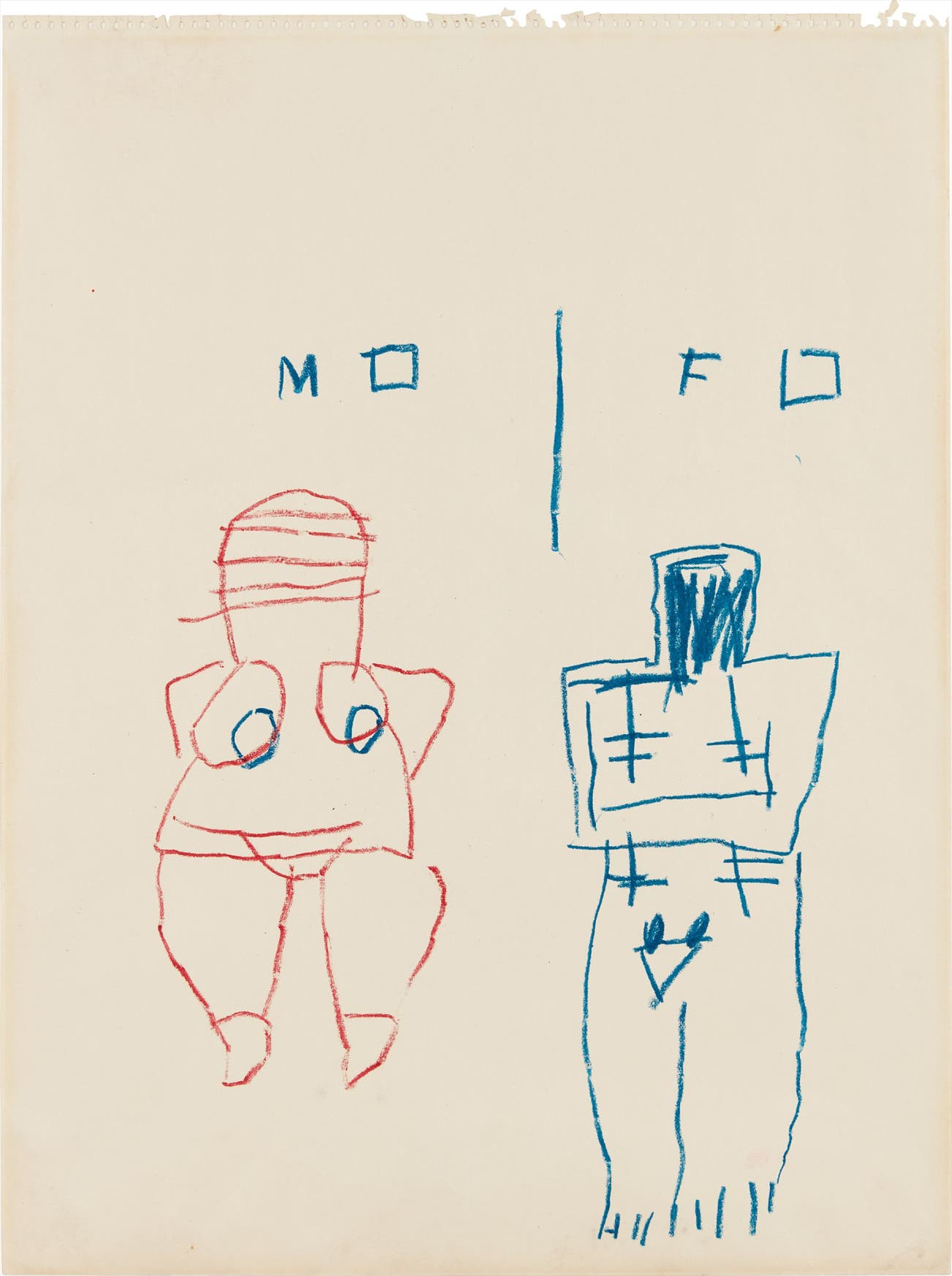 Basquiat's iconoclastic oeuvre revolves around the human figure. Exploiting the creative potential of free association and past experience, he created deeply personal, often autobiographical, images by drawing liberally from such disparate fields as urban street culture, music, poetry, Christian iconography, African-American and Aztec cultural histories and a broad range of art historical sources.