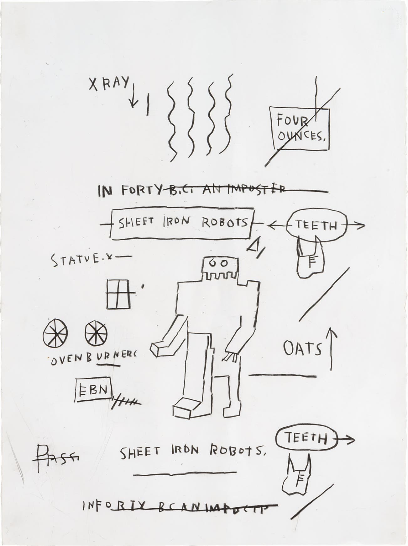 Basquiat's iconoclastic oeuvre revolves around the human figure. Exploiting the creative potential of free association and past experience, he created deeply personal, often autobiographical, images by drawing liberally from such disparate fields as urban street culture, music, poetry, Christian iconography, African-American and Aztec cultural histories and a broad range of art historical sources.