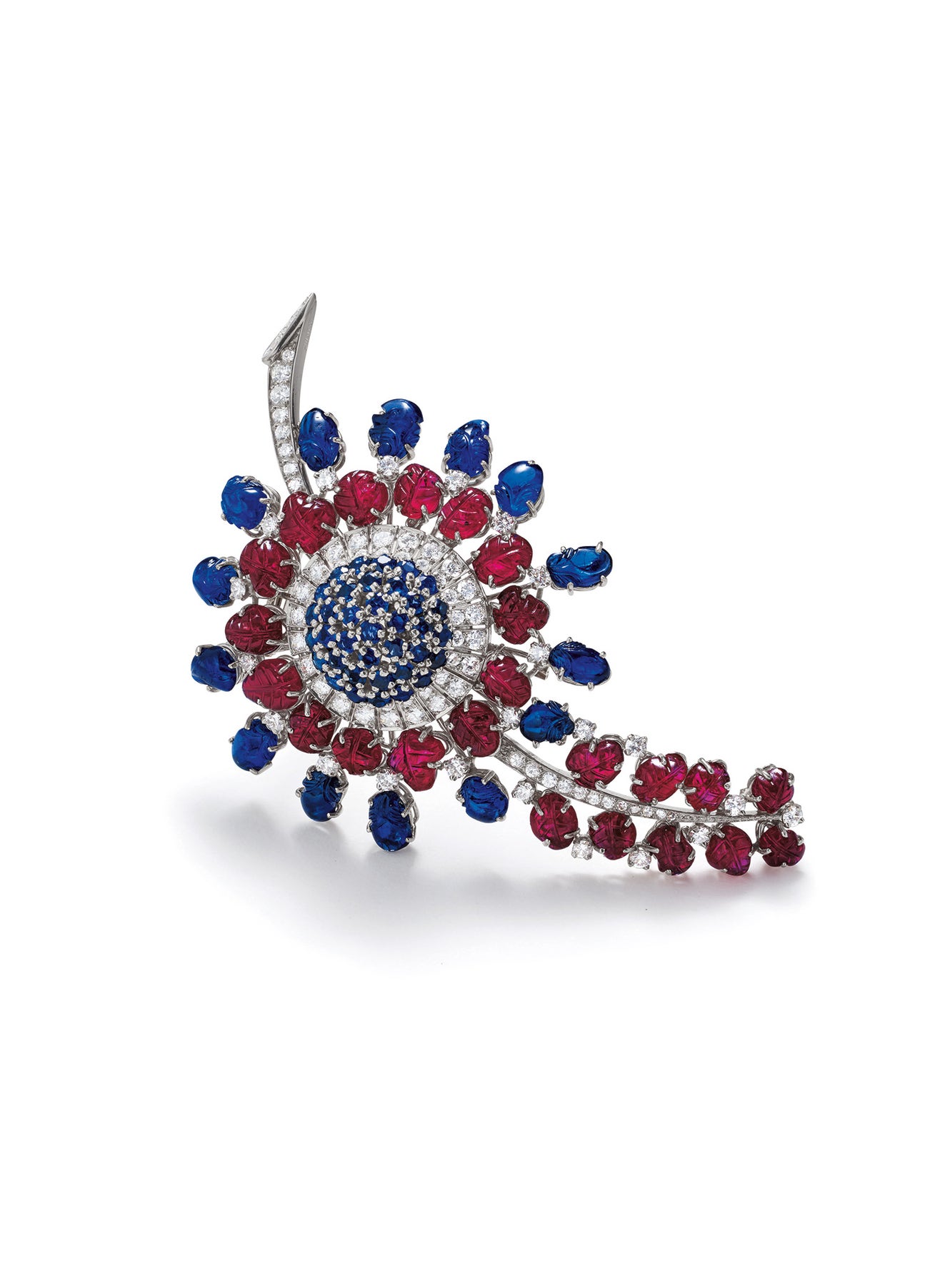 A Ruby, Sapphire, Diamond, Platinum and Gold Brooch