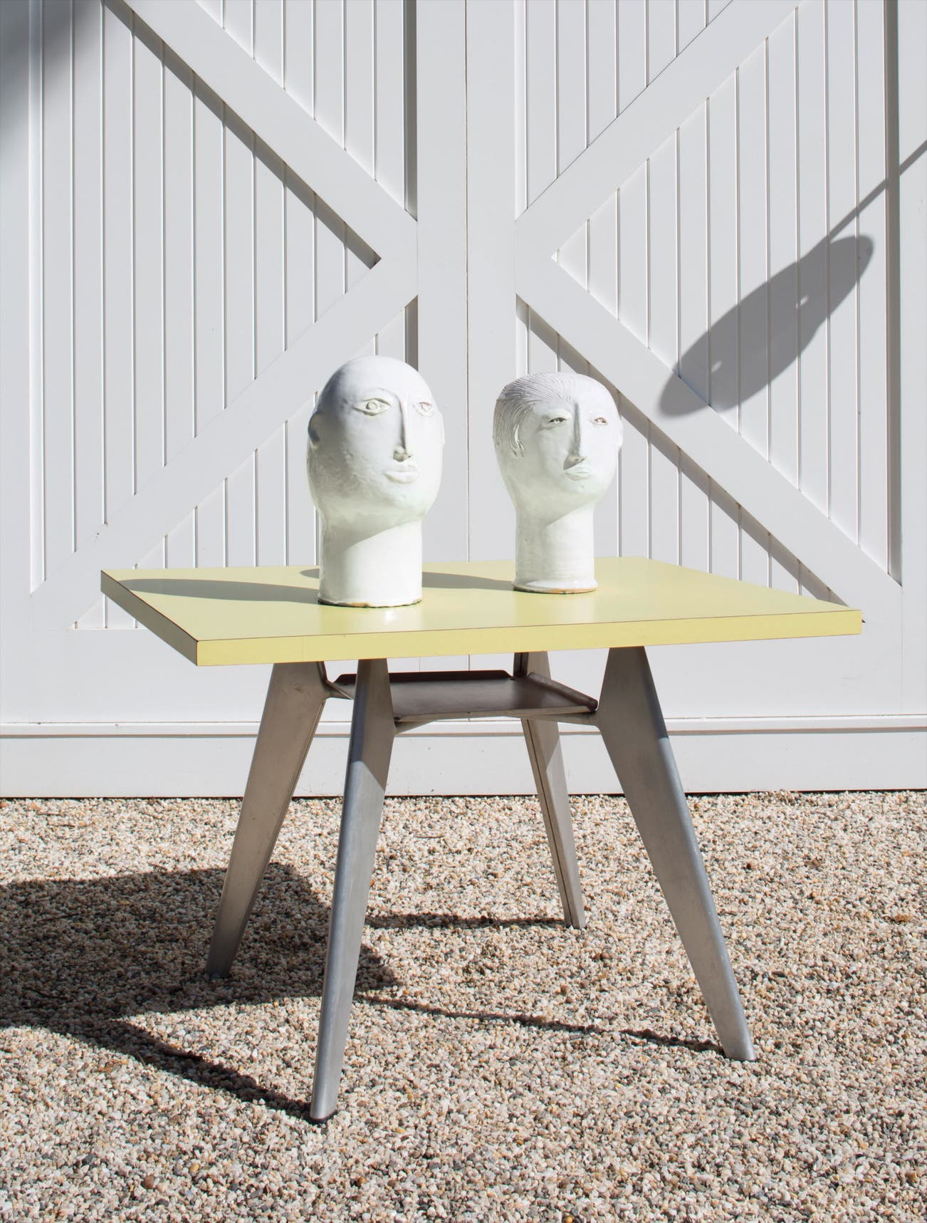 French | B. 1901 D. 1984Jean Prouvé believed in design as a vehicle for improvement. His manufactory Les Ateliers Jean Prouvé, located in Nancy, France, produced furniture for schools, factories and municipal projects, both within France and in locations as far flung as the Congo. Though he designed for the masses, pieces such as his "Potence" lamps and "Standard" chairs are among the most iconic fixtures in sophisticated, high-design interiors today. Collectors connect with his utilitarian, austere designs that strip materials down to the bare minimum without compromising on proportion or style.